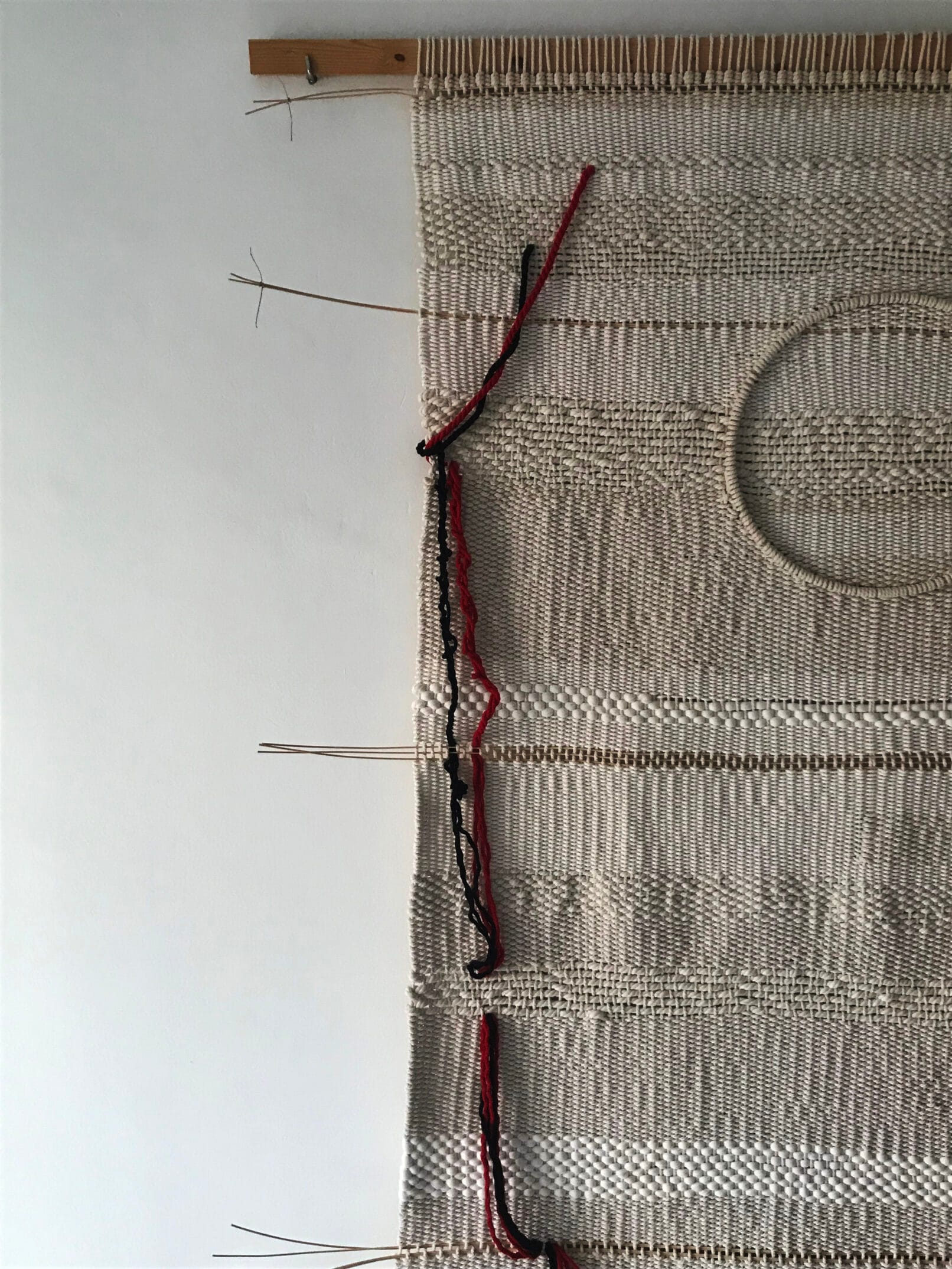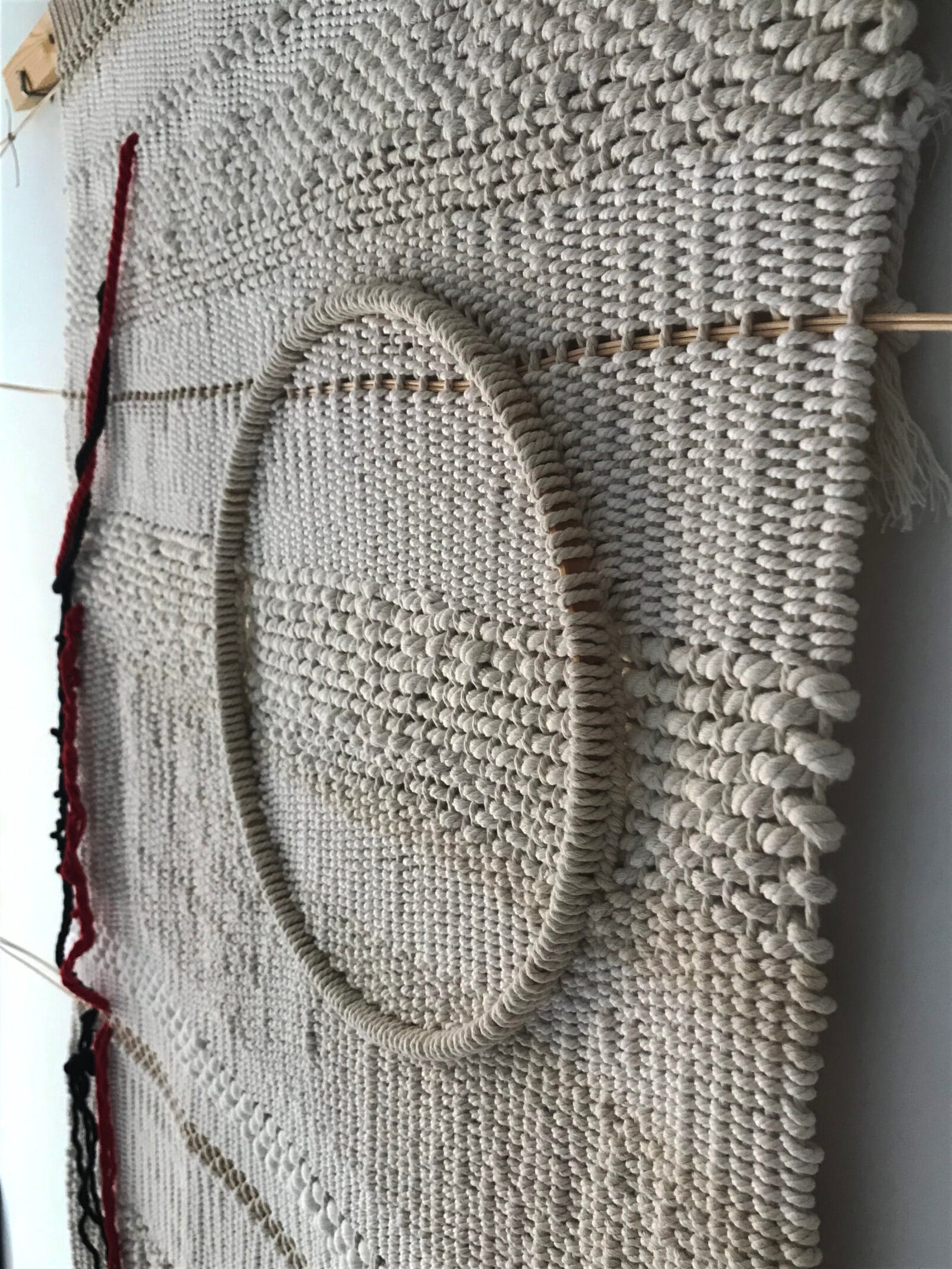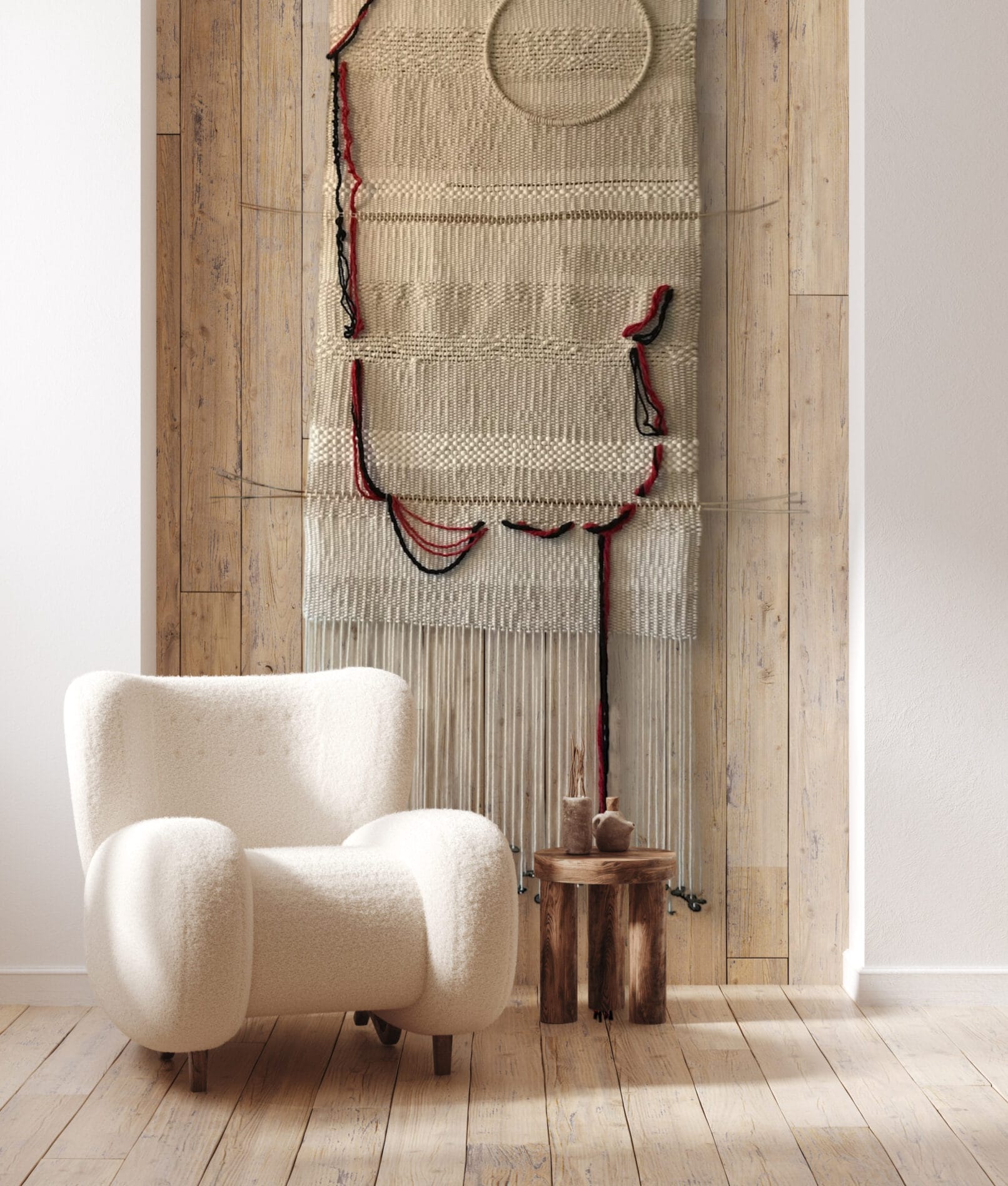 El tapiz de arte textil Frontera es una obra que invita a la reflexión sobre los límites, tanto físicos como emocionales, que nos separan y nos conectan.